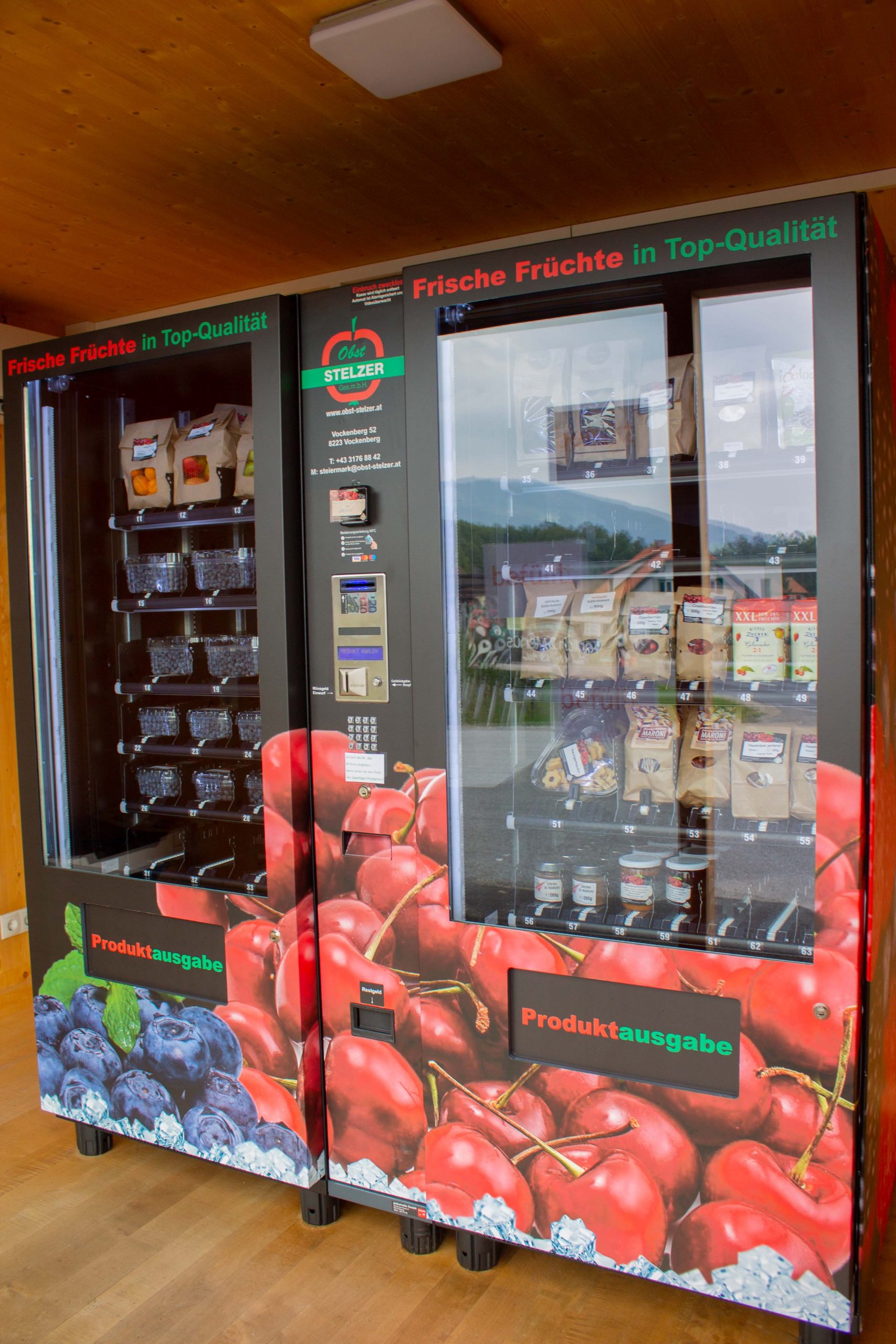 Unser Früchteautomat bietet die Möglichkeit jährlich rund um die Uhr frisches Obst zu erwerben. Das Sortiment umfasst verschiedenste Beeren- und Steinobstprodukte sowie Maroni in aller Form.